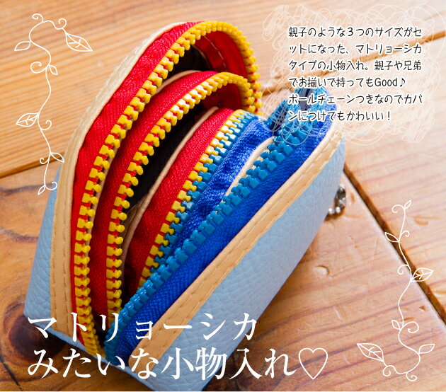 商品説明 12色 マトリョーシカ風 3点セットポーチ 大中小サイズ♪